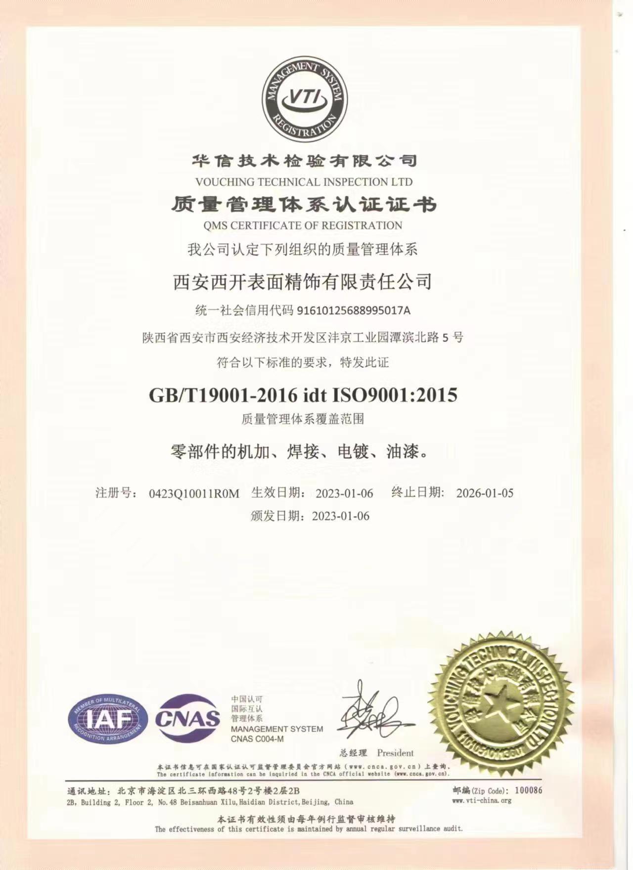 质量管理系统认证证书的取得,,,,,,,代表着企业管理系统运行策划和控制具有有用性,,,,,,,质量管理系统的建设和完善具有可信度,,,,,,,是一种信誉的象征,,,,,,,同时也标记着西开精饰管理水平迈上了新台阶。。。。。。。在以后的管理事情中,,,,,,,西开精饰将严酷开展程序化、标准化、规范化管理,,,,,,,一连深耕质量基础管理事情,,,,,,,一直打造西开精饰质量品牌,,,,,,,为公司实现“质量再登高”目的孝顺更鼎力大举量。。。。。。。