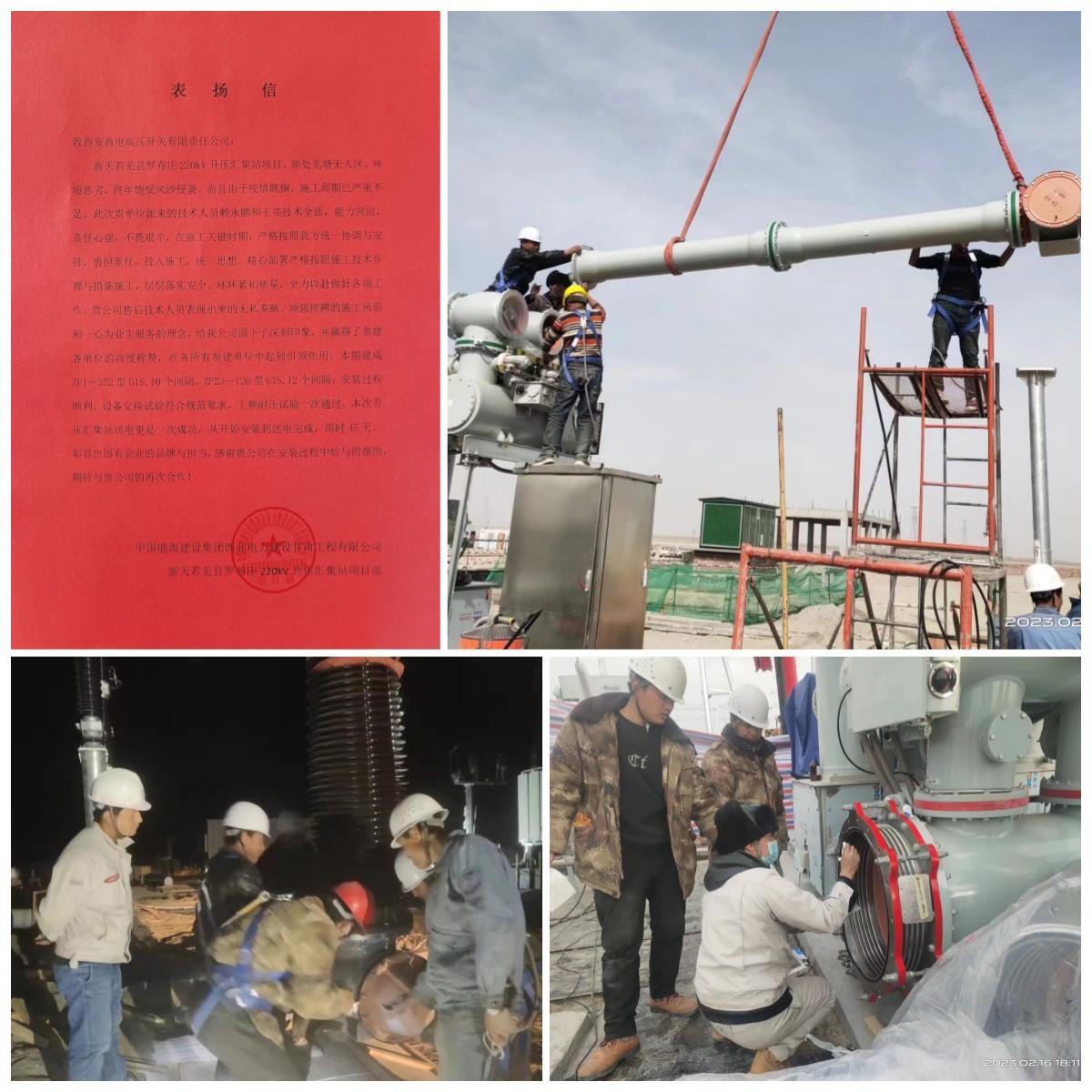 今年会官网登录入口为该工程提供ZF1-252新型三工位GIS 10个距离、ZF23-126型GIS 12个距离。。。。。。接到使命后,,,,,今年会官网登录入口连忙组织钻研剖析,,,,,认真妄想,,,,,选派新疆、西北片区能力周全、手艺精湛的服务职员前往现场。。。。。。装置历程中,,,,,面临工期紧、现场情形恶下等难题,,,,,服务职员不畏辛勤,,,,,勇挑重担,,,,,起劲配适用户,,,,,全心策划施工办法,,,,,严酷凭证工艺流程开展装置。。。。。。针对新型三工位装备问题,,,,,现场接纳双确认原则紧盯细节,,,,,认真落实清静与质量,,,,,最终包管装备耐压试验一次通过,,,,,送电一次乐成。。。。。。今年会官网登录入口将承继“三心”服务理念,,,,,做实做细边疆的服务事情,,,,,为高质量生长保驾护航。。。。。。